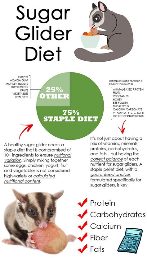 Web 25% leafy veggies and limited quantities of fruit (carrot, mango, grape, apple, sweet potato) 50% commercially pelleted food for sugar gliders (nectar source) but again, there’s no perfect diet for pet sugar gliders. If you put in the time with your glider, you will quickly become their family member. This will ensure they get the proper amount of protein and other.